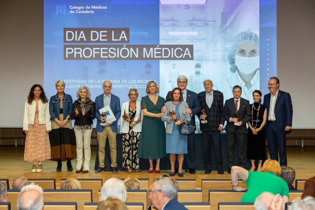 Igualmente, se ha otorgado el Premio Especial del Colegio a título póstumo al recientemente fallecido José Alburquerque, un reconocimiento que fue presentado por la doctora Alicia Gómez y que lo recogieron su viuda, Carmen Prieto, y su hija, la hematóloga Cristina Alburquerque, de la mano de María Dolores Acón, gerente del Hospital de Valdecilla.