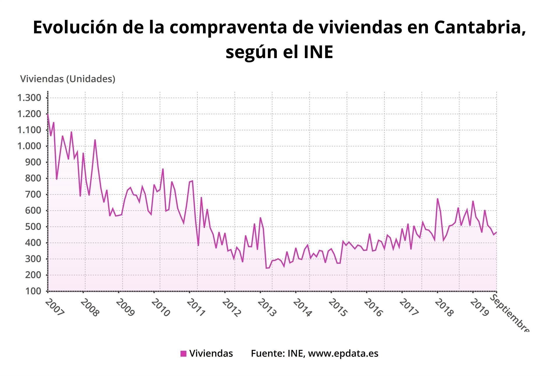 La compraventa de viviendas cayó un 8,1% en septiembre en Cantabria en relación con el mismo mes de 2018, hasta las 466 operaciones, según ha informado hoy el Instituto Nacional de Estadística (INE).
