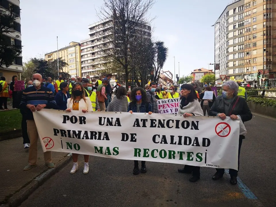 Los asistentes han portado pancartas que decían 'Por una Atención Primaria de calidad. ¡No más recortes!', 'Por pensiones públicas y dignas. No 0,25%' y 'Primero la Primaria. Sanidad + Pública'.