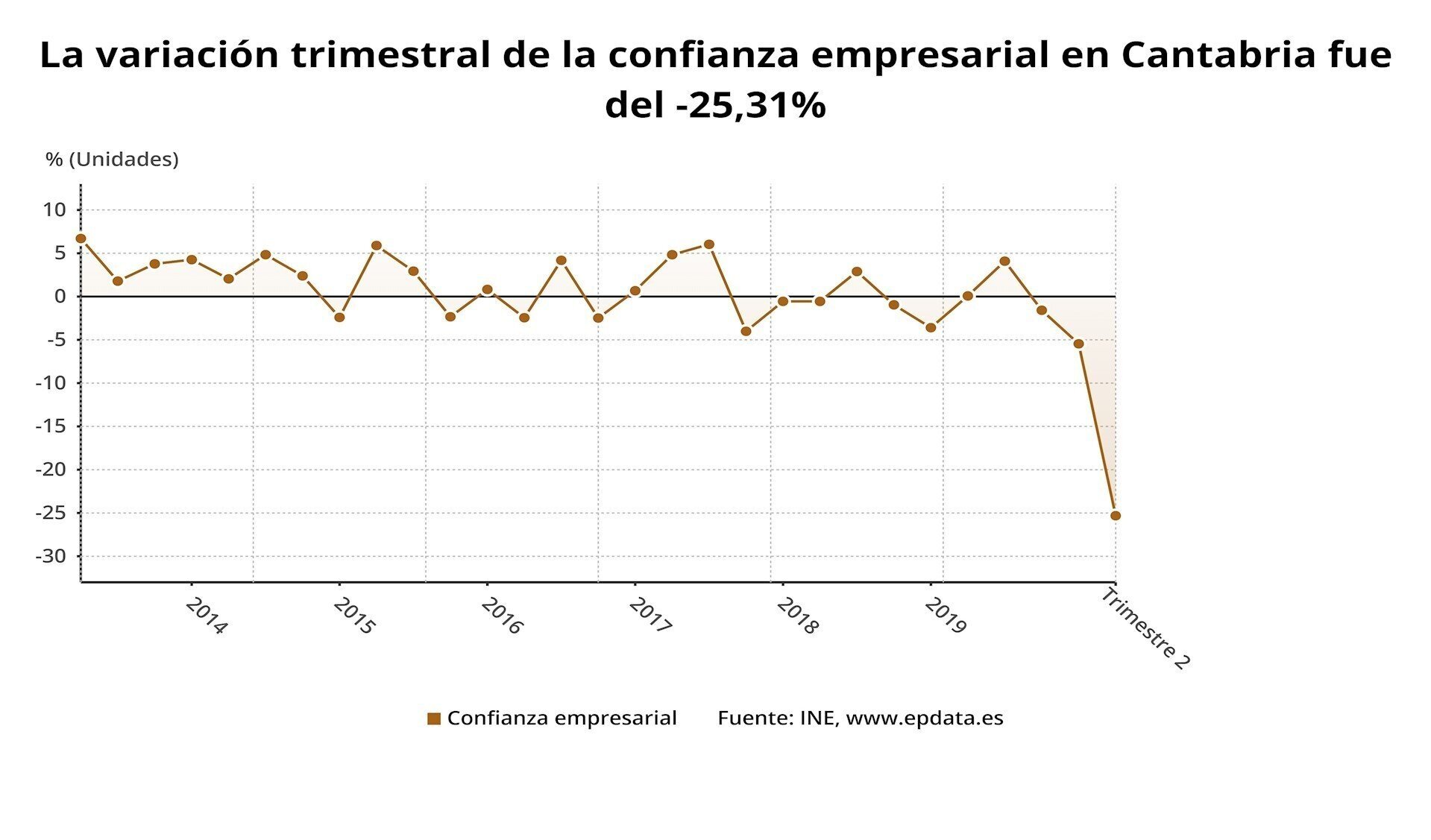 El Índice de Confianza Empresarial Armonizado (ICEA), cuya publicación corresponde al Instituto Nacional de Estadística (INE), ha caído un -25,3% en Cantabria en el segundo trimestre de este año respecto al trimestre anterior.