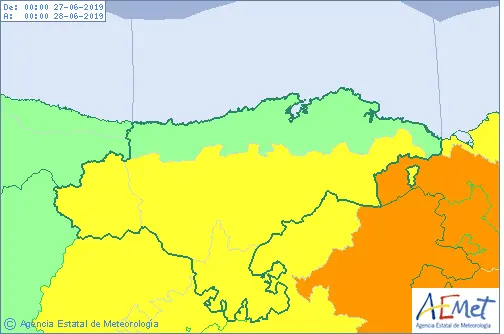 Toda la comunidad autónoma de Cantabria, excepto el litoral, estará este jueves, 27 de junio, en aviso de nivel amarillo (riesgo) por altas temperaturas que podrían alcanzar los 36 grados centígrados, según la predicción de la Agencia Estatal de Meteorología (AEMET).