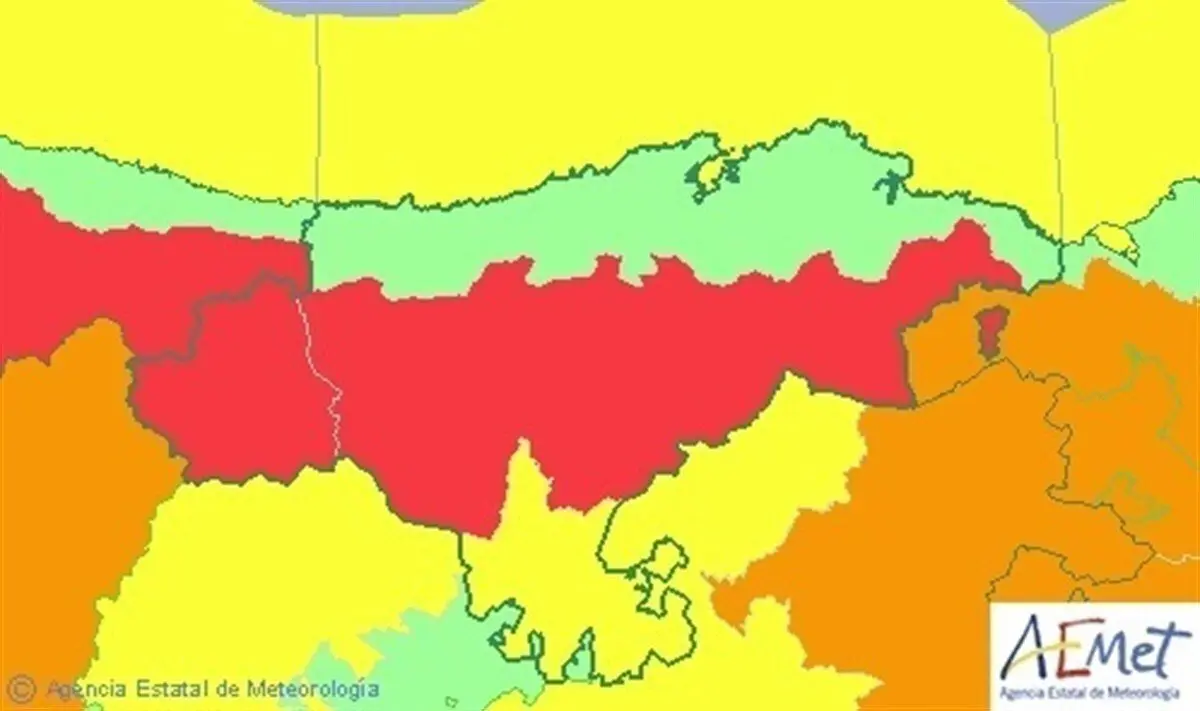 Así, un total de 19 provincias tendrán riesgo por nevadas. En concreto, el aviso será rojo en Asturias y Cantabria, donde se esperan acumulaciones de 20 centímetros de nieve e incluso hasta 50 centímetros en algunos puntos mientras el aviso es de color naranja en Álava, Guipúzcoa, Vizcaya, Navarra, Burgos y León.