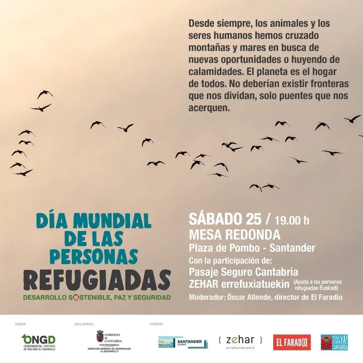 En el acto participará la directora general de Cooperación al Desarrollo del Gobierno de Cantabria, Silvia Abascal, y también estarán presentes los colectivos ZEHAR Errefuxiatuekin y Pasaje Seguro Cantabria. Moderará la actividad el periodista Óscar Allende, director del Faradio.