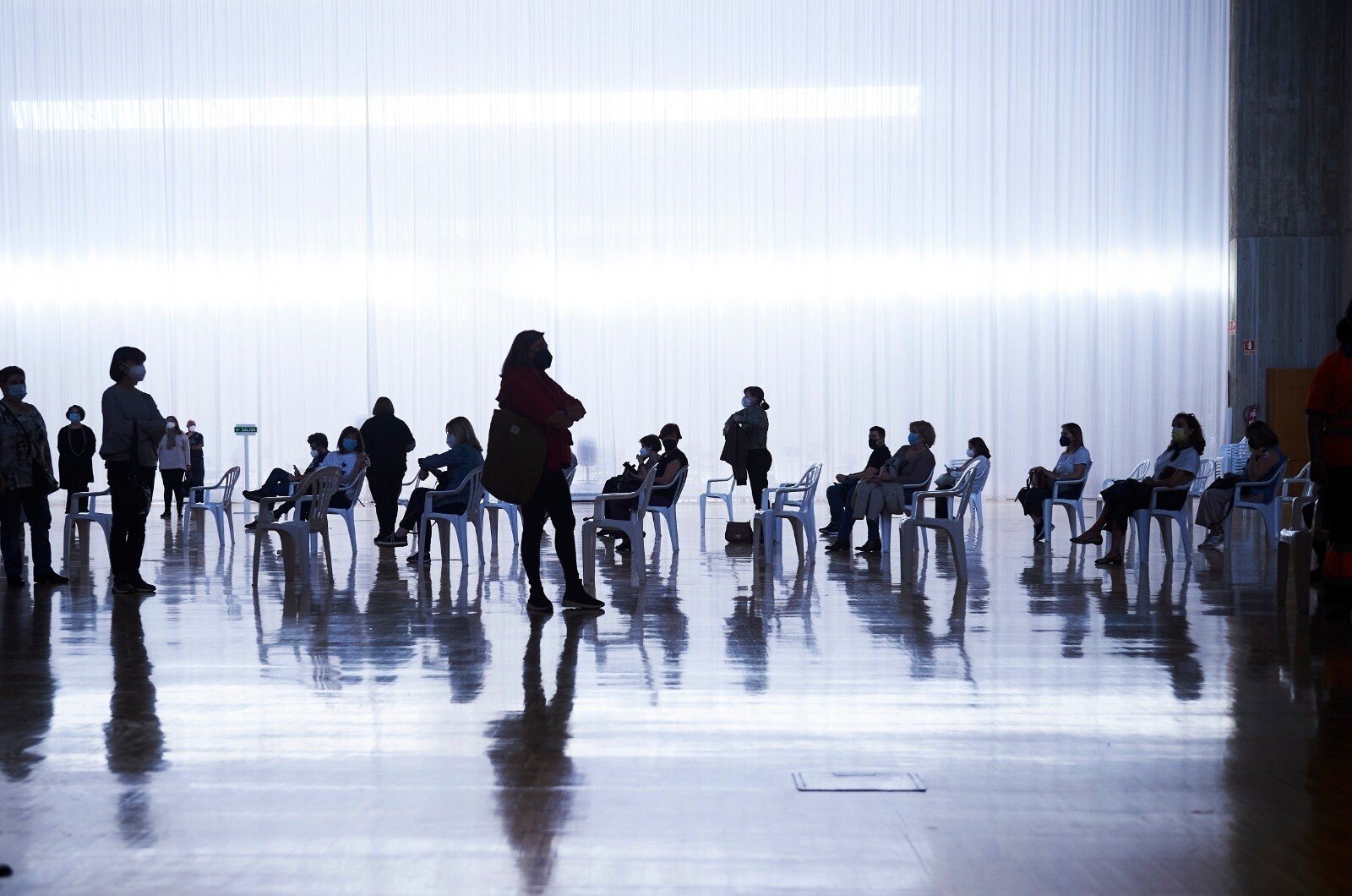 Los citados a vacunarse, que cuentan con una entrada y una salida a las instalaciones diferenciadas, deben leer unos paneles informativos y guardar una fila, respetando la distancia de seguridad, para proceder a la administración de la vacuna, tras la cual tienen que esperar unos 15 minutos por posibles reacciones en las sillas instaladas en el espacio.