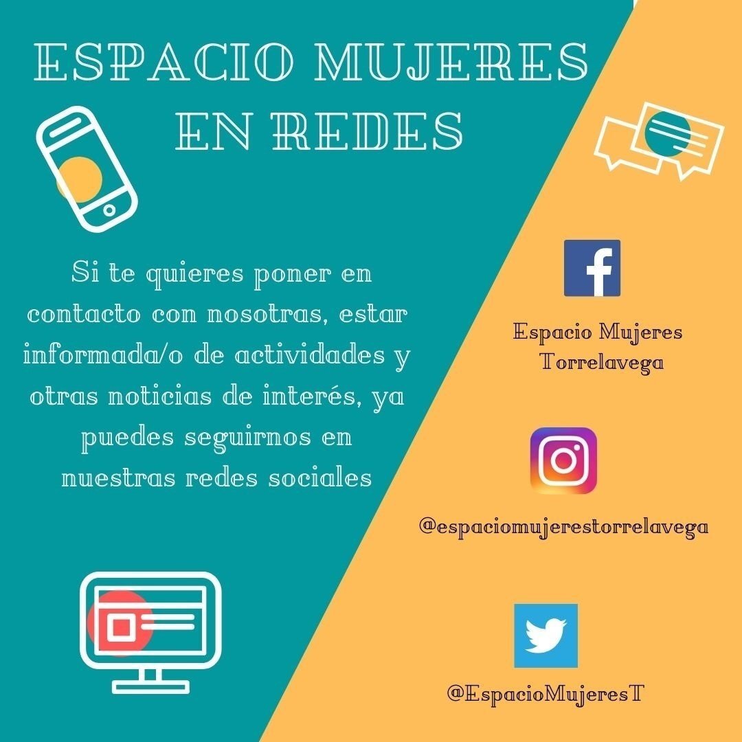 En concreto, Espacio Mujeres cuenta con vías de comunicación a través de Facebook (Espacio Mujeres Torrelavega), Instagram (@espaciomujerestorrelavega), Twitter (@EspacioMujeresT), correo electrónico (igualdad@aytotorrelavega.es) y teléfono (942 803 208).