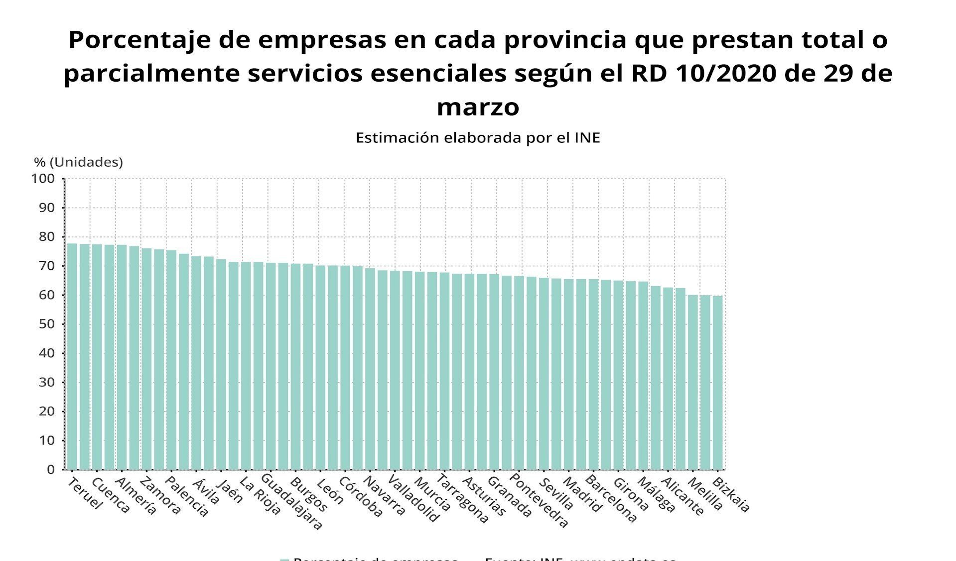 "Por tanto, los datos presentados son una aproximación a la dimensión de lo que representa en el total de la economía la actividad esencial del Real Decreto-ley 10/2020, aunque tiene las limitaciones expuestas", aclara el INE.