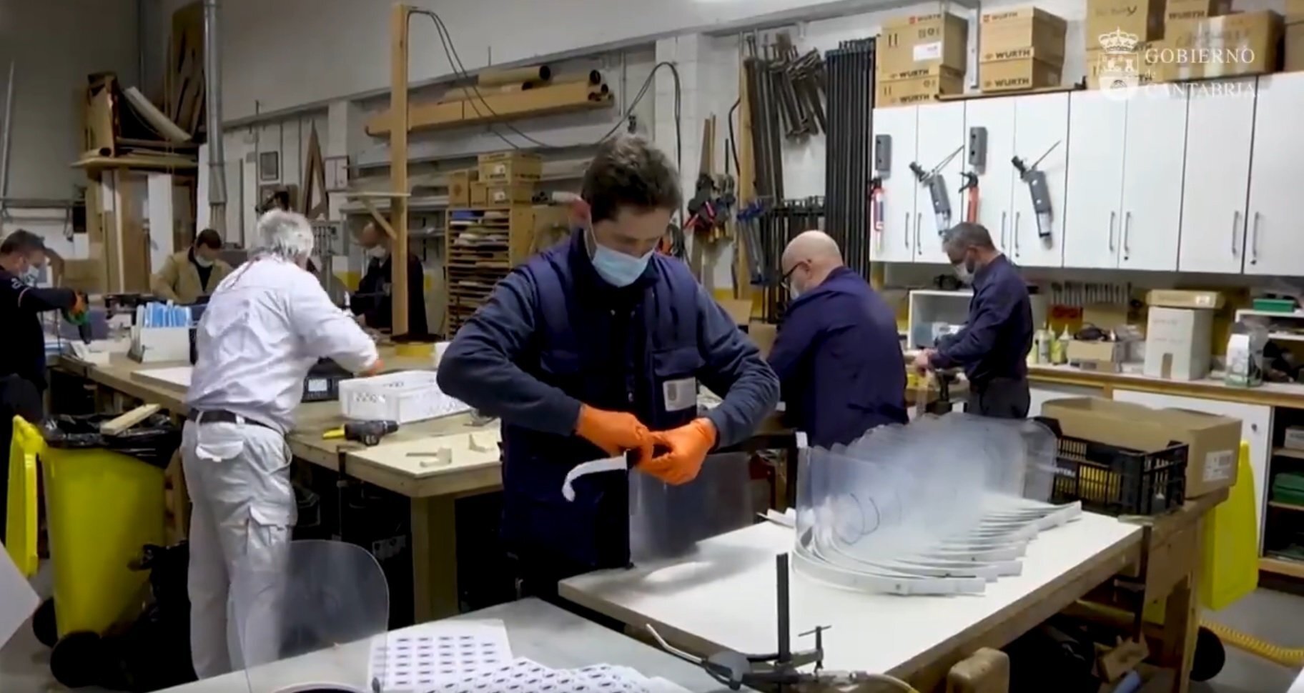 El encargado general de talleres, Francisco Martínez, asegura en el vídeo que "todo el mundo está colaborando" dentro de los talleres del Ejecutivo cántabro, que se encuentran "en plena producción". "Nos llevamos muy bien y nos gusta hacerlo", ha concluido.