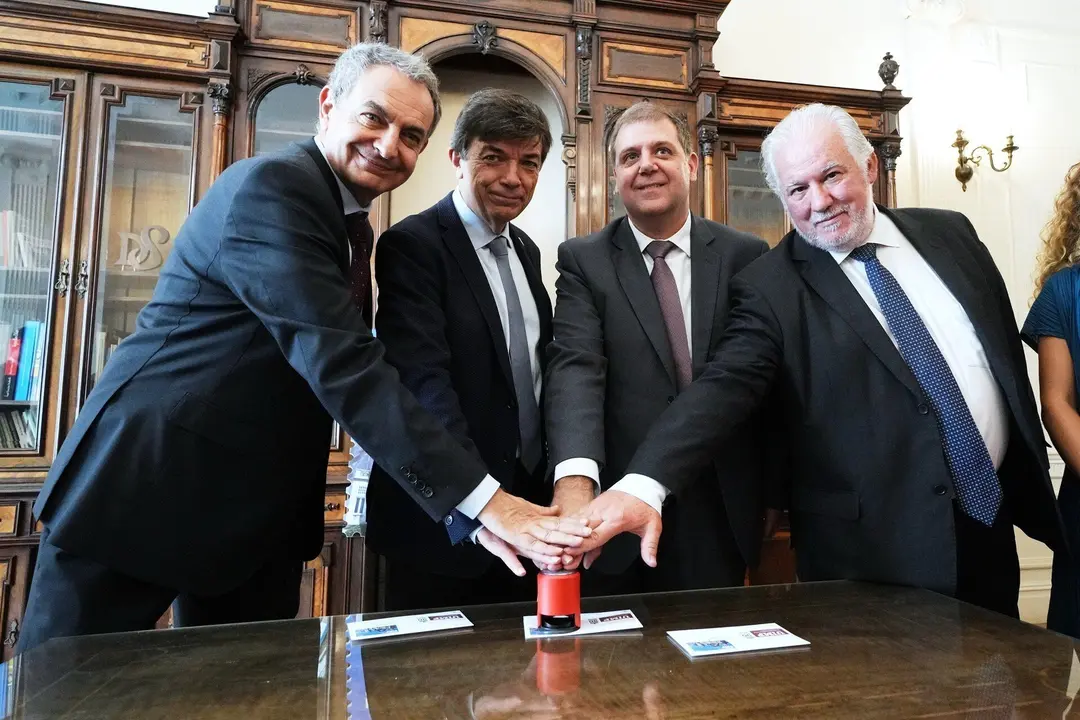 La sala Madrazo del Palacio de la Magdalena de Santander ha acogido la presentación de la emisión, en la que han participado el rector de la UIMP, Carlos Andradas; el presidente de Correos, Juan Manuel Serrano; y la directora de Relaciones Institucionales y Filatelia de la empresa logística, Leire Díez.