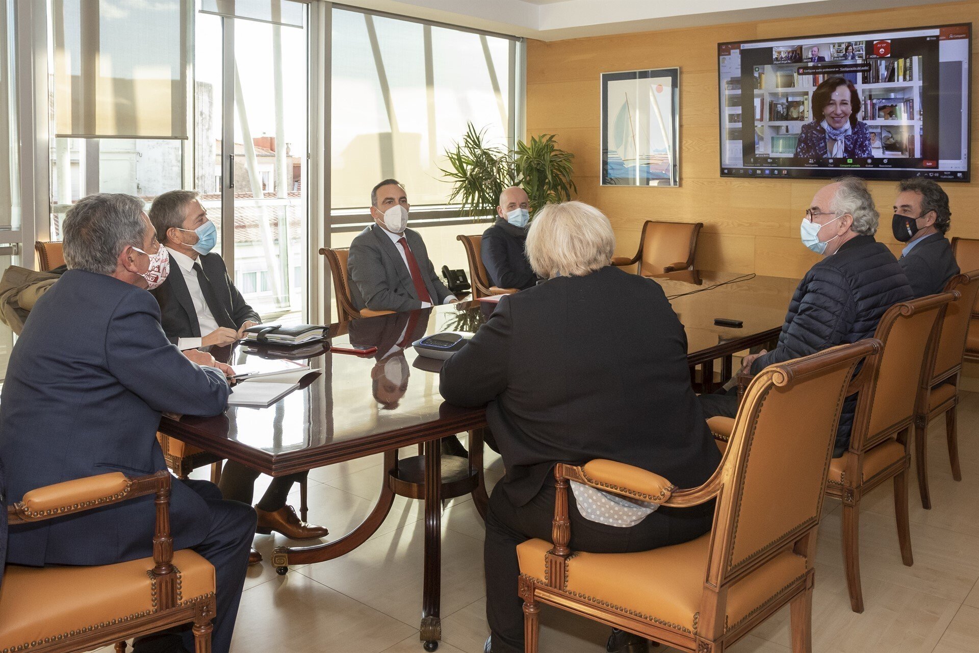 Por la tarde mantuvieron un encuentro con representantes del Banco Santander en el que participó por videoconferencia su presidenta, Ana Botín, quien tenía previsto desplazarse a la capital cántabra, pero se vio obligada a cancelar el viaje a última hora como consecuencia deltemporal de nieve en Madrid.