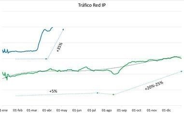 A partir de ese mes y durante el periodo estival, baja el uso de datos por la Red IP, puesto que la mayoría de la población está fuera de su residencia habitual. El momento de mayor crecimiento se produce a la vuelta de vacaciones, a partir de septiembre, con un repunte del tráfico de hasta un 25% en los últimos cuatro meses del año.