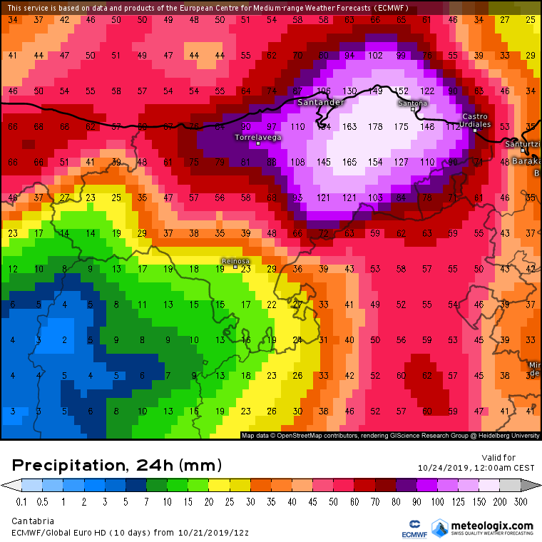 Este aviso se extenderá hasta la medianoche, al igual que el aviso amarillo que también por lluvias, pero con acumulaciones inferiores estimadas por la AEMET en 60 litro por metro cuadrado en 12 horas, afectarán durante el mismo periodo a la comarca de Liébana y la Cantabria del Ebro.
