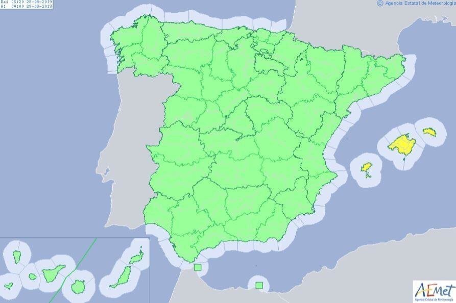 Islas Baleares es la única comunidad autónoma en alerta amarilla por riesgo de lluvias y tormentas, una vez que la Depresión Aislada en Niveles Altos (DANA) se aleja de España en dirección a Italia, según ha informado la Agencia Estatal de Meteorología (AEMET).