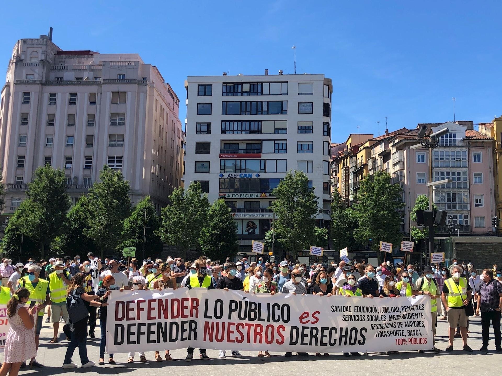 En la capital cántabra, la concentración ha estado encabezada por una gran pancarta con el lema de "Defender lo público es defender nuestros derechos", así como otras en las que se podía leer "Gobierne quien gobierne las pensiones y los servicios públicos se defienden", perteneciente a la Coordinadora Cántabra por Pensiones Públicas y Dignas.