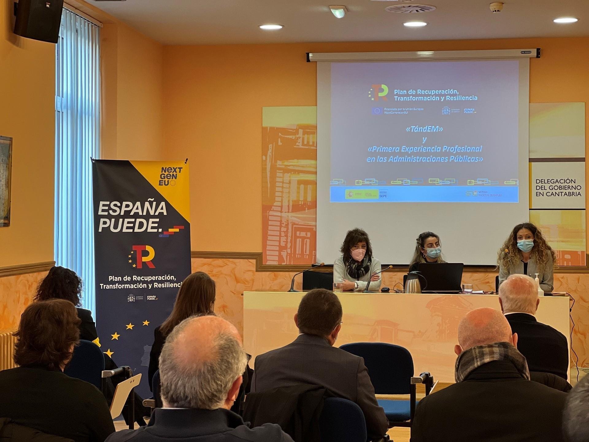 La Delegación del Gobierno en Cantabria ha acogido este jueves una jornada del Servicio Público de Empleo Estatal (SEPE) para presentar el 'Programa de primera experiencia profesional en las administraciones públicas', para la contratación de personas jóvenes desempleadas, mayores de 16 y menores de 30 años, en el marco del Plan de Recuperación, Transformación y Resiliencia.