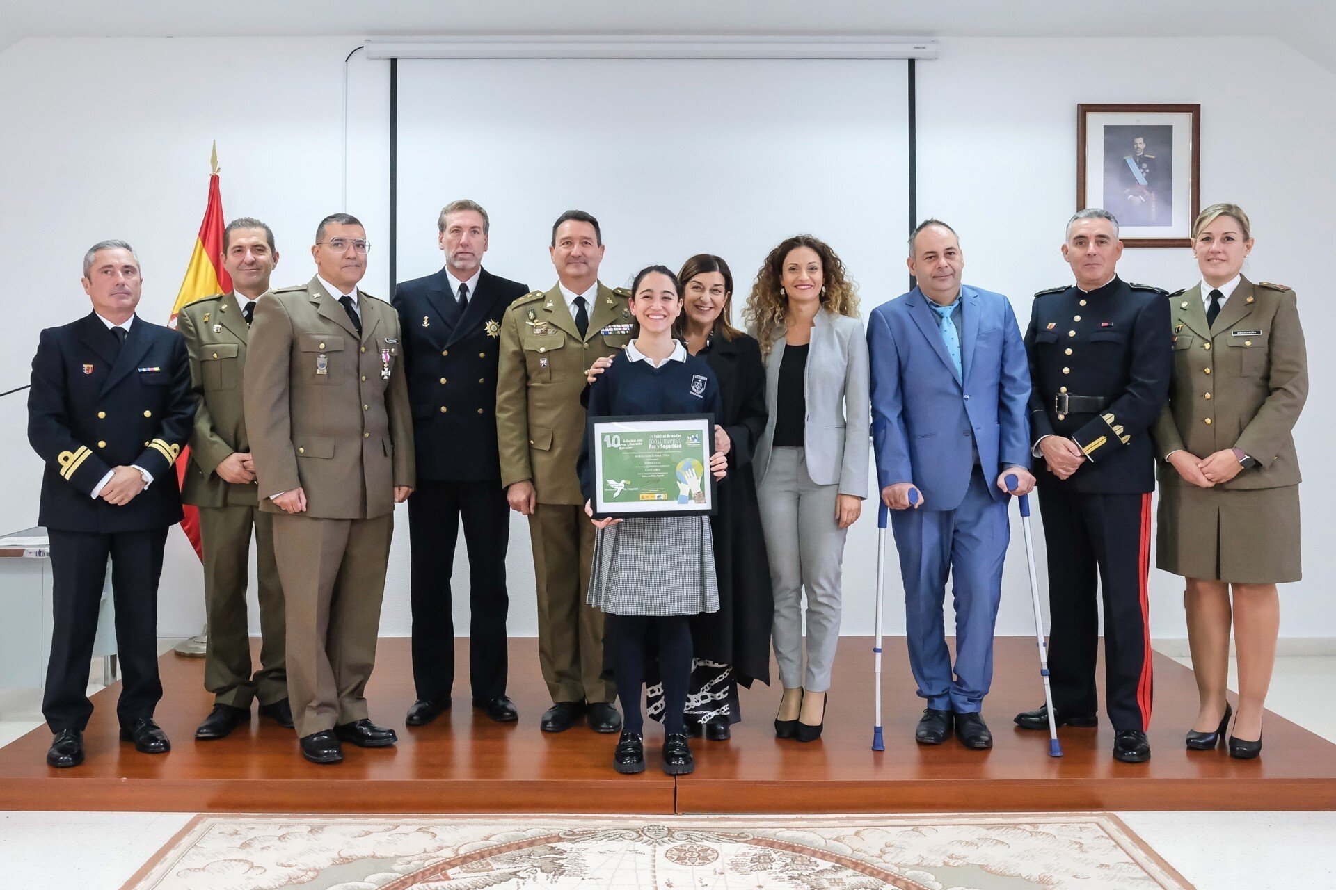 En el transcurso de la ceremonia, se ha entregado el premio del concurso literario escolar 'Carta a un militar español', que ha recogido la alumna del colegio Torreánaz María García.