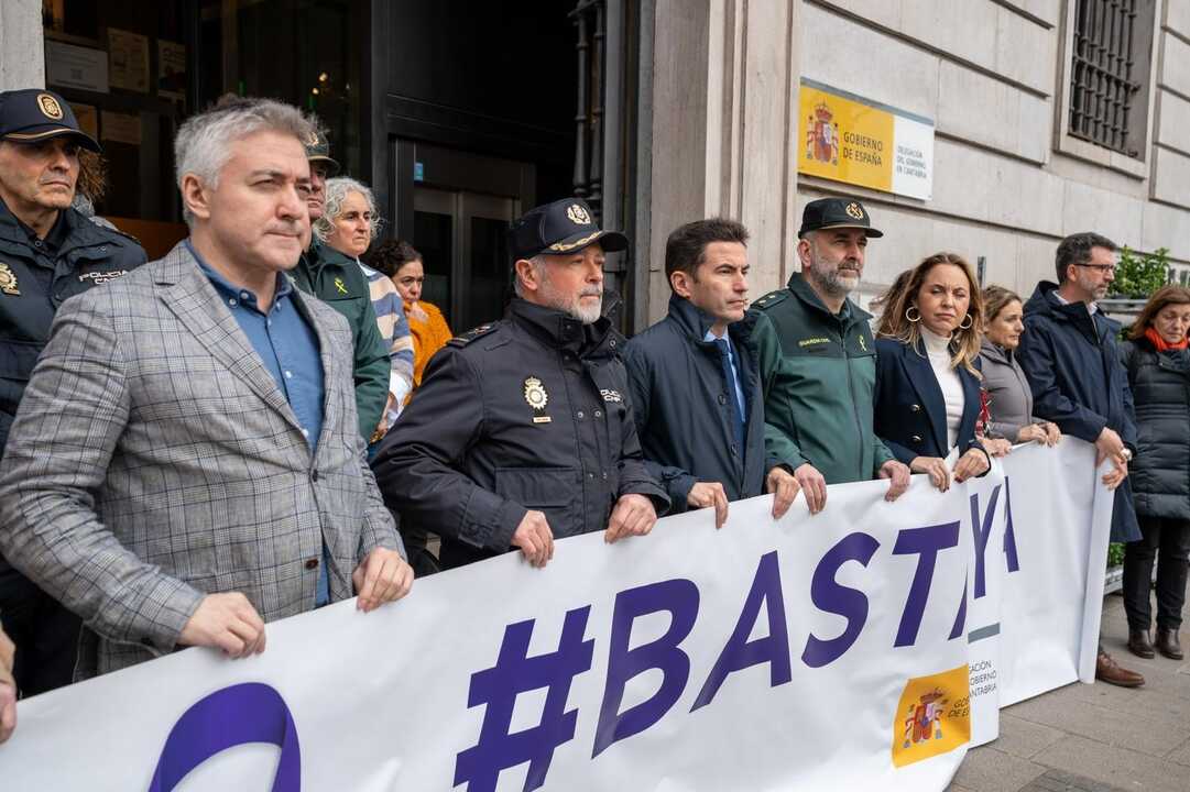 El delegado del Gobierno en Cantabria, Pedro Casares, ha encabezado este minuto de silencio a las puertas de la sede de Calvo Sotelo en el que también han participado el secretario general de la Delegación, Santiago García, la jefa de la Unidad de Coordinación de Violencia sobre la Mujer, Diana Mirones, y personal de la institución.
