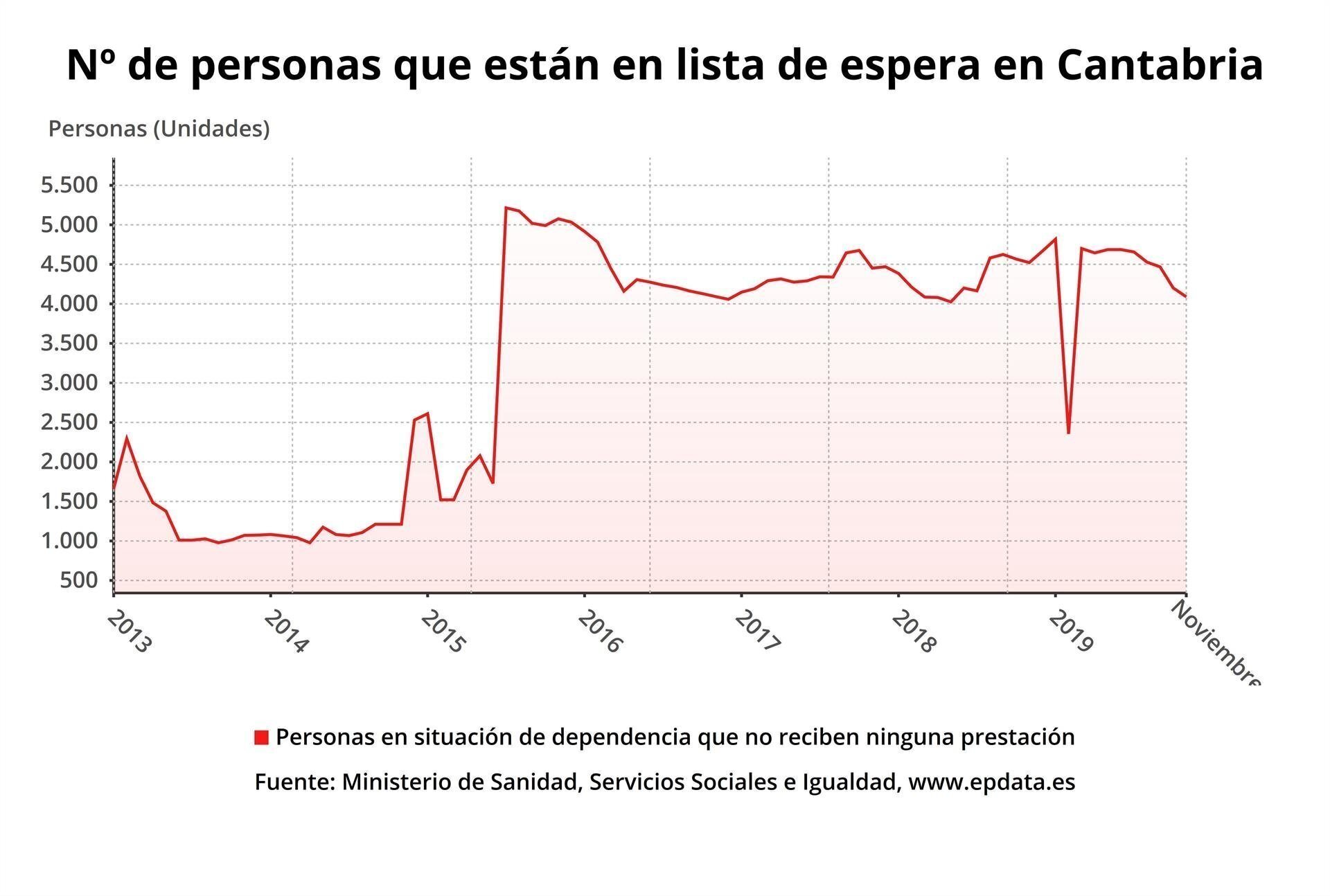 Según el mismo, a 30 de noviembre de este año, en Cantabria hay 4.575 casos pendientes de algún trámite, de los que 486 están pendientes de valoración de grado y 4.089 pendientes de resolución del Programa Individual de Atención (PIA).
