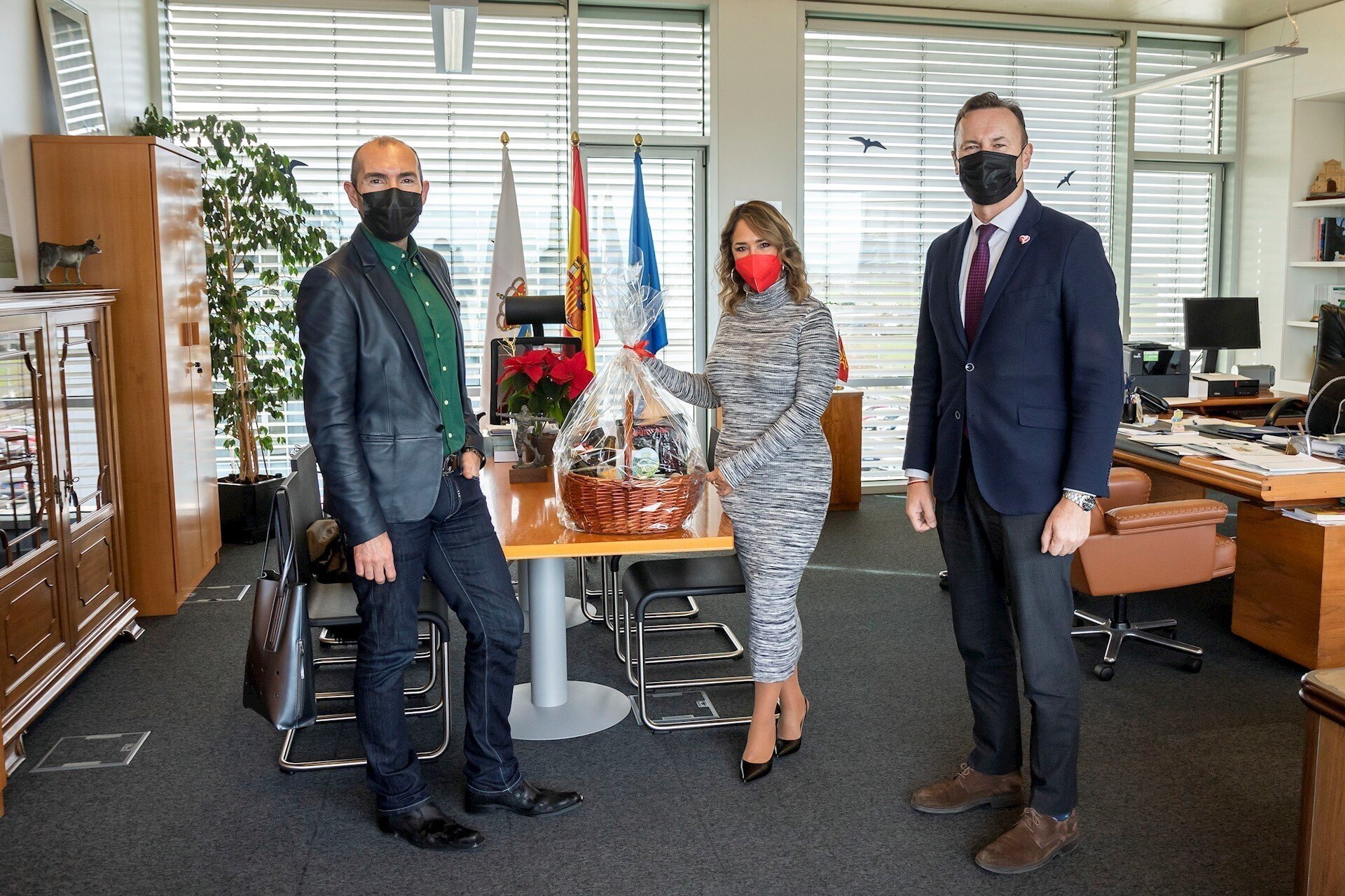 El consejero de Desarrollo Rural, Ganadería, Pesca, Alimentación, Guillermo Blanco, ha entregado este jueves una cesta de productos cántabros para su sorteo en la gala solidaria de Navidad a favor de Cruz Roja y el Banco De Alimentos de Cantabria, que se celebrará este sábado en la finca de las Carolinas.