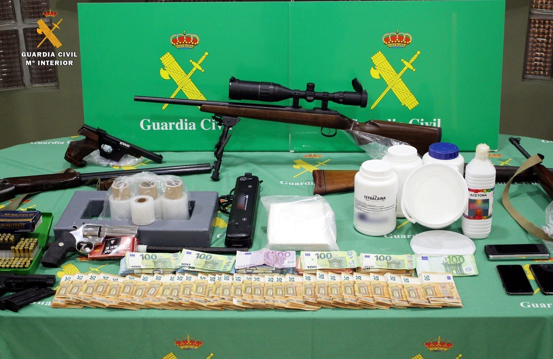 Dentro de esta operación antidroga denominada 'Sparkly Chestnut' se interceptó primero en Alcobendas (Madrid) una transacción de aproximadamente un kilo de cocaína, y en registros domiciliarios posteriores practicados en Getafe y en las localidades cántabras de Cianca, Santander y Villabañez se incautaron sustancias de corte con las que podían haber duplicado la droga intervenida, además de armas de fuego (un revolver, una pistola, rifles y escopetas), munición, efectos para la dosificación de la droga y dinero. También se pusieron a disposición judicial cuatro vehículos.