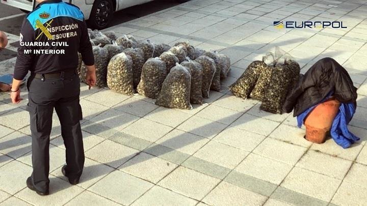 La Guardia Civil, coordinada por Europol, ha intervenido 38,5 toneladas de almejas japónicas en el marco de la operación Txuspas, en la que ha sido detenidas e investigadas 43 personas, 39 españoles y cuatro portuguesas.