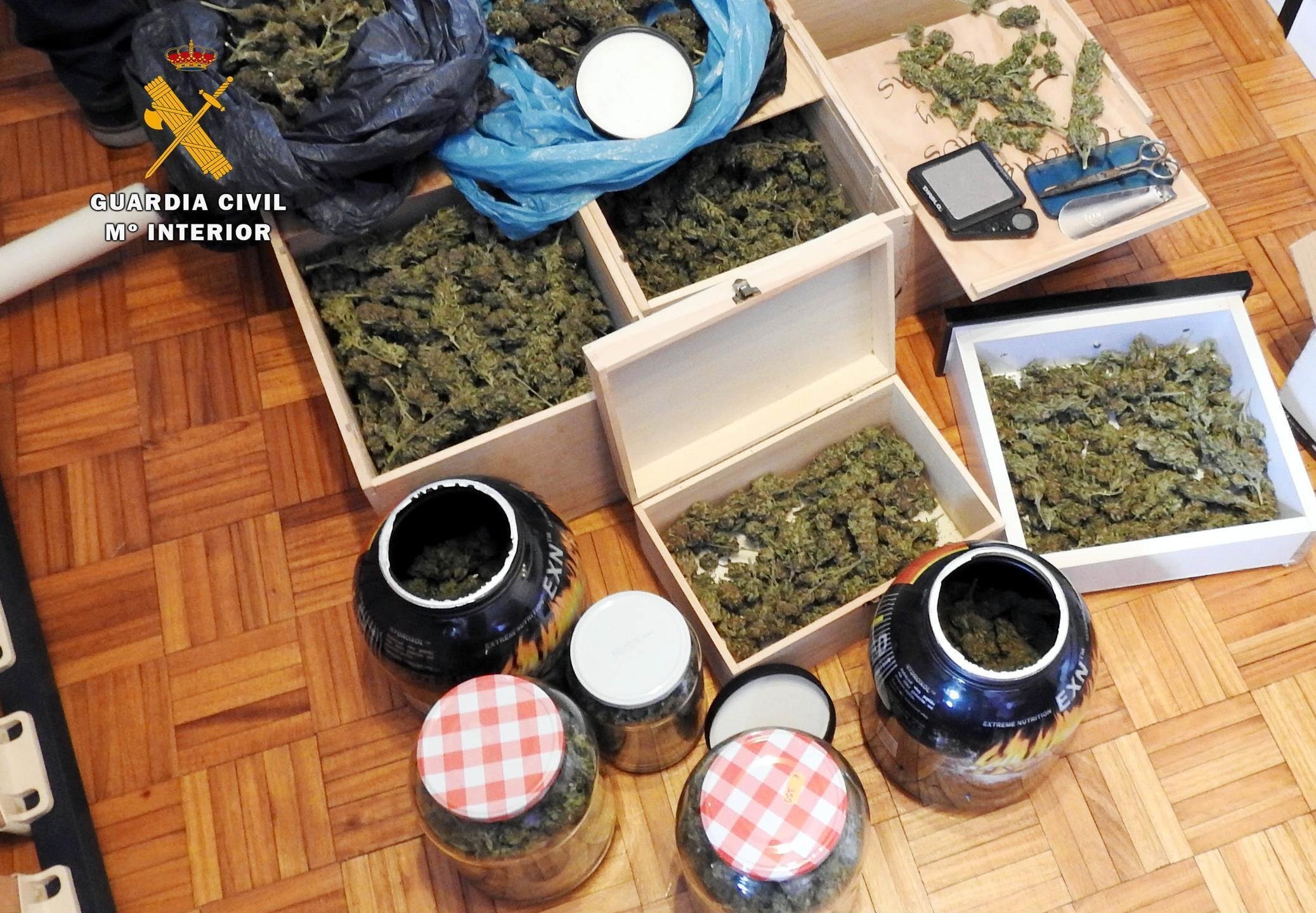 En el registro en la vivienda de Burgos se intervinieron cerca de tres kilos de cogollos de marihuana y varias tabletas de hachís, básculas de precisión y diverso material para la dosificación de la droga. Los agentes sospechan que esta persona traficaba con droga para financiar su actividad grafitera.