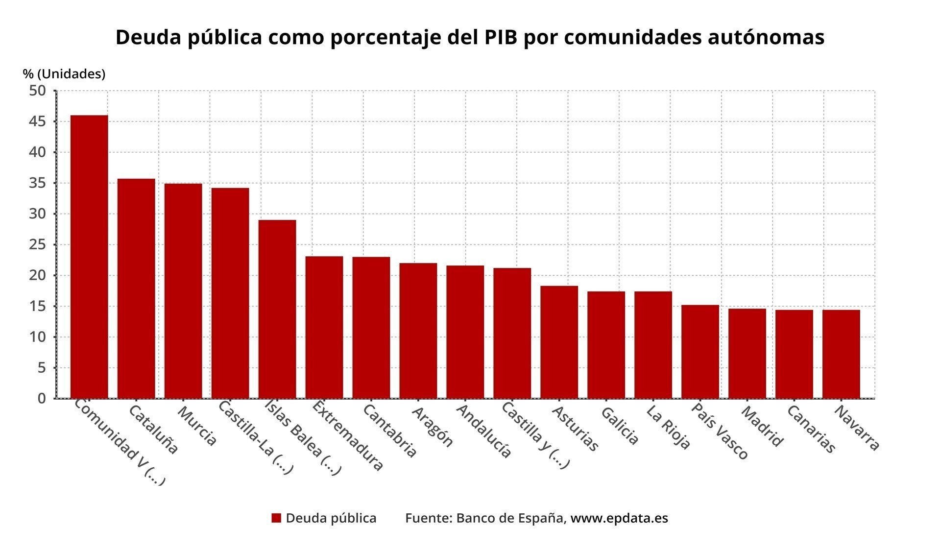 Sin embargo, es la séptima deuda más elevada de las comunidades en relación al PIB.