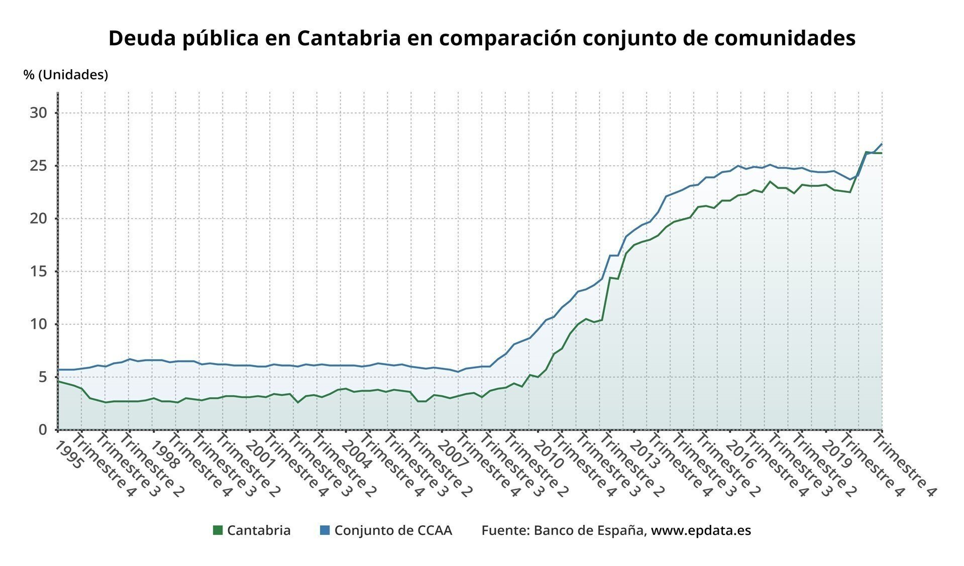 Con todo, la deuda de Cantabria en relación al PIB en 2020 es inferior a la del conjunto nacional, del 27,1%.
