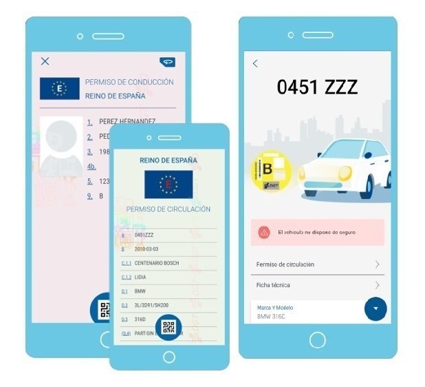Los agentes de la autoridad podrán conocer en tiempo real la información que se suministra en el móvil y verificar, mediante la lectura de un código QR de un único uso generado por la propia aplicación, dicha información desde las tablets que llevan los agentes, y ver información actualizada sobre permisos y validez de los mismos. Los permisos de conducción y circulación en el móvil incorporan marcas visuales para dificultar el fraude.