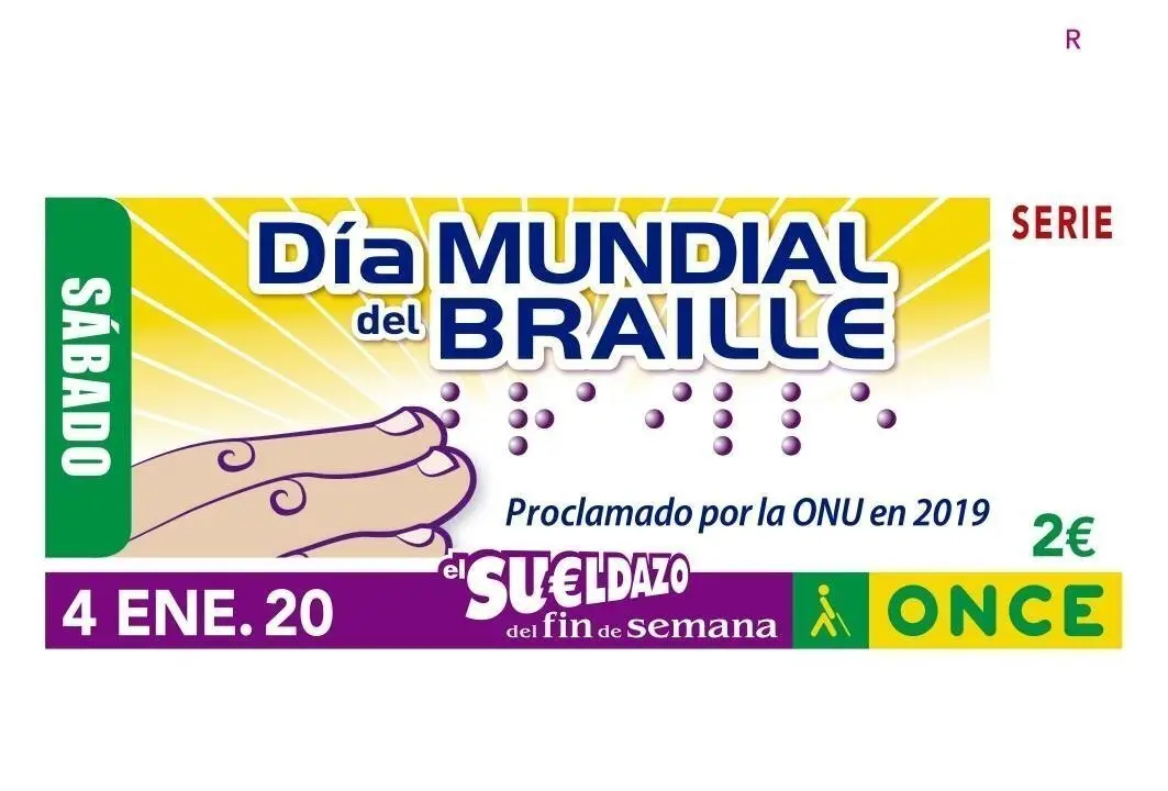 El Día Mundial del Braille, proclamado por la ONU en 2019, protagoniza el cupón de la ONCE de este sábado 4 de enero, de modo que cinco millones y medio de cupones celebrarán que, con seis puntos, la vida de las personas ciegas es más accesible.