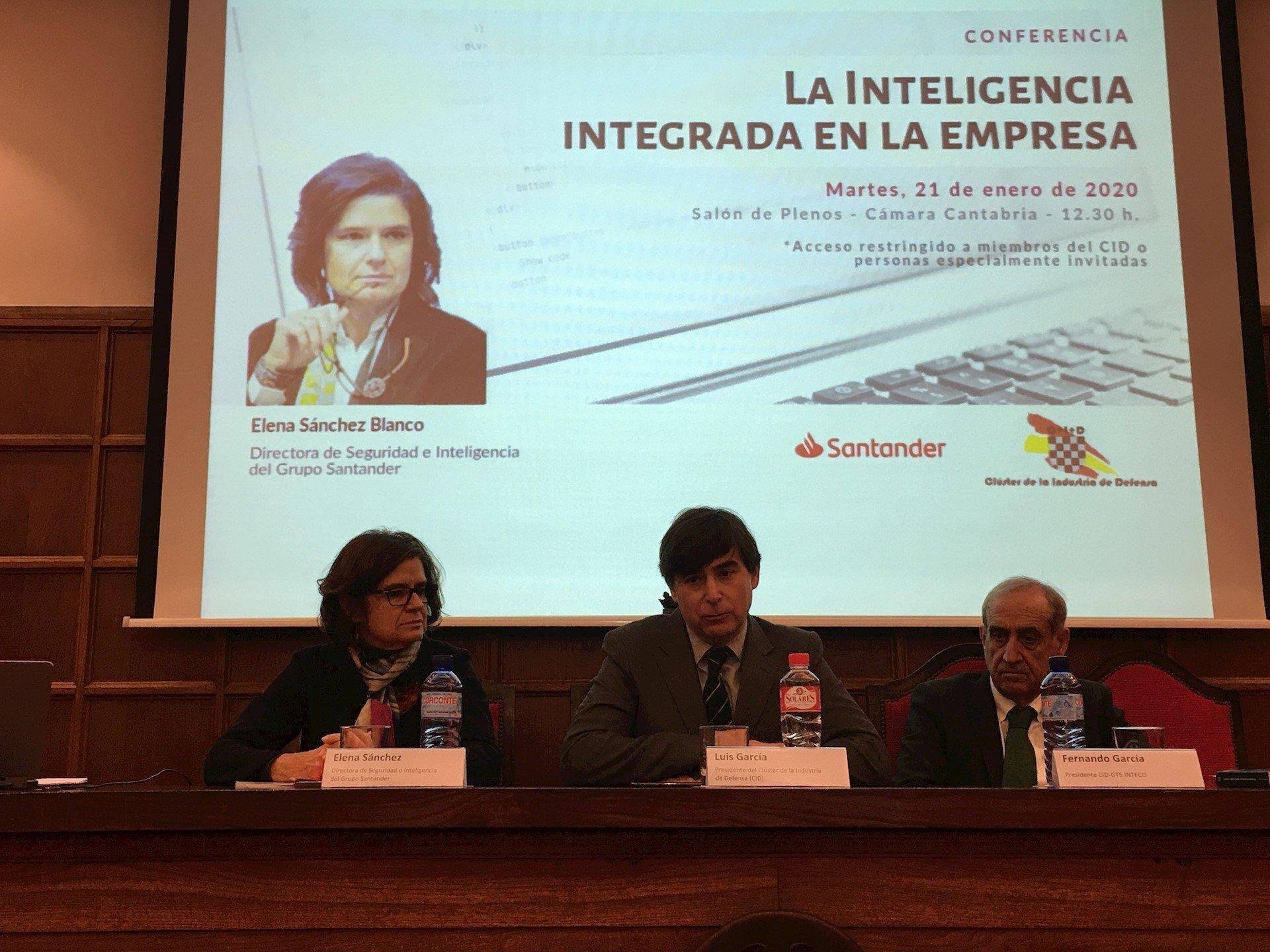 La directora de Seguridad e Inteligencia del Grupo Santander y exsecretaria general del Centro Nacional de Inteligencia (CNI), Elena Sánchez, ha impartido este martes una conferencia al Clúster de la Industria de Defensa bajo el epígrafe 'La inteligencia integrada en la empresa'.