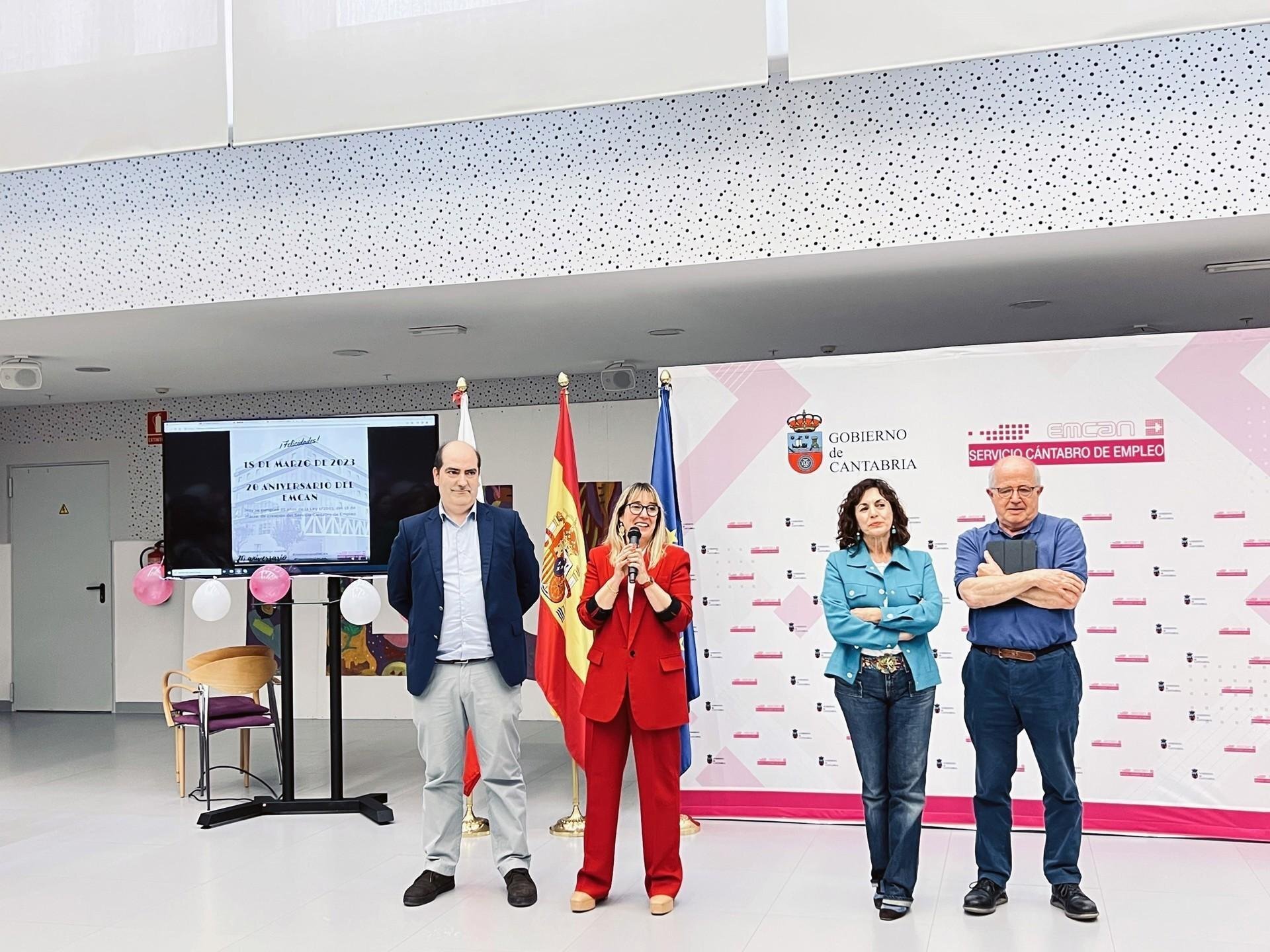 Las consejeras de Empleo y Políticas Sociales, Eugenia Gómez de Diego, y de Economía y Hacienda, Ana Belén Álvarez, han participado este jueves en los actos conmemorativos del XX aniversario del EMCAN, en los que se ha rendido homenaje a los 32 empleados jubilados desde 2020, cuando se suspendieron todas las celebraciones a consecuencia de la pandemia, y han destacado el papel de este servicio como "pieza esencial" en el mercado laboral de Cantabria y la "profesionalidad y trabajo" de los empleados que atienden a los usuarios.
