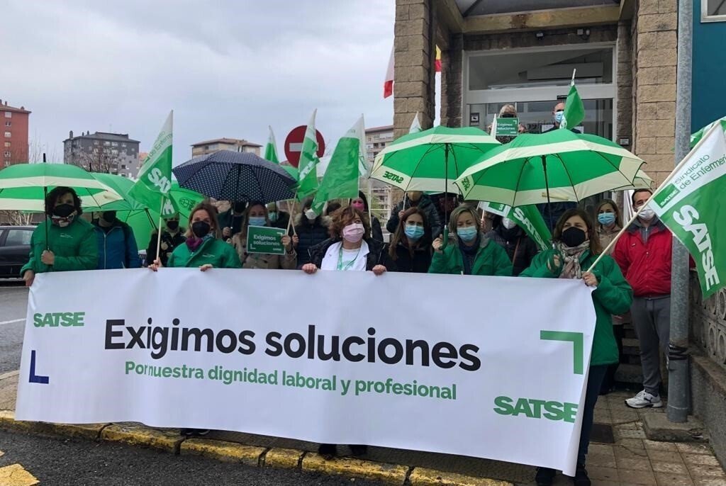 Enfermeras, especialistas y fisioterapeutas se han concentrado este miércoles frente a la sede del Servicio Cántabro de Salud para reclamar una mejora de la sanidad.