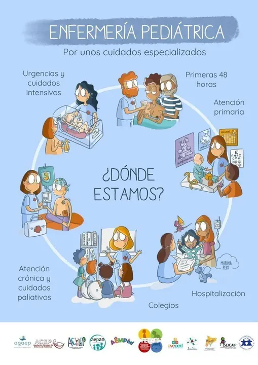 También enseñará los diferentes ámbitos en los que un niño puede tener la necesidad de ser atendido por un enfermero especialista en pediatría, y lo hará a través de las ilustraciones de Marina Peix, enfermera especialista en este ámbito.