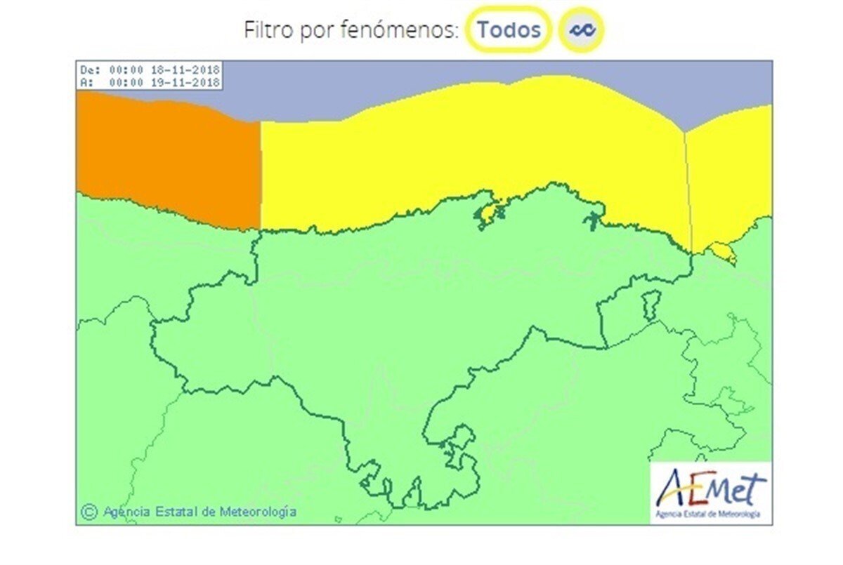 El aviso se activará a las 6.00 horas de este domingo y está previsto que se prolongue hasta la medianoche del lunes, según la información de la Agencia Estatal de Meteorología.