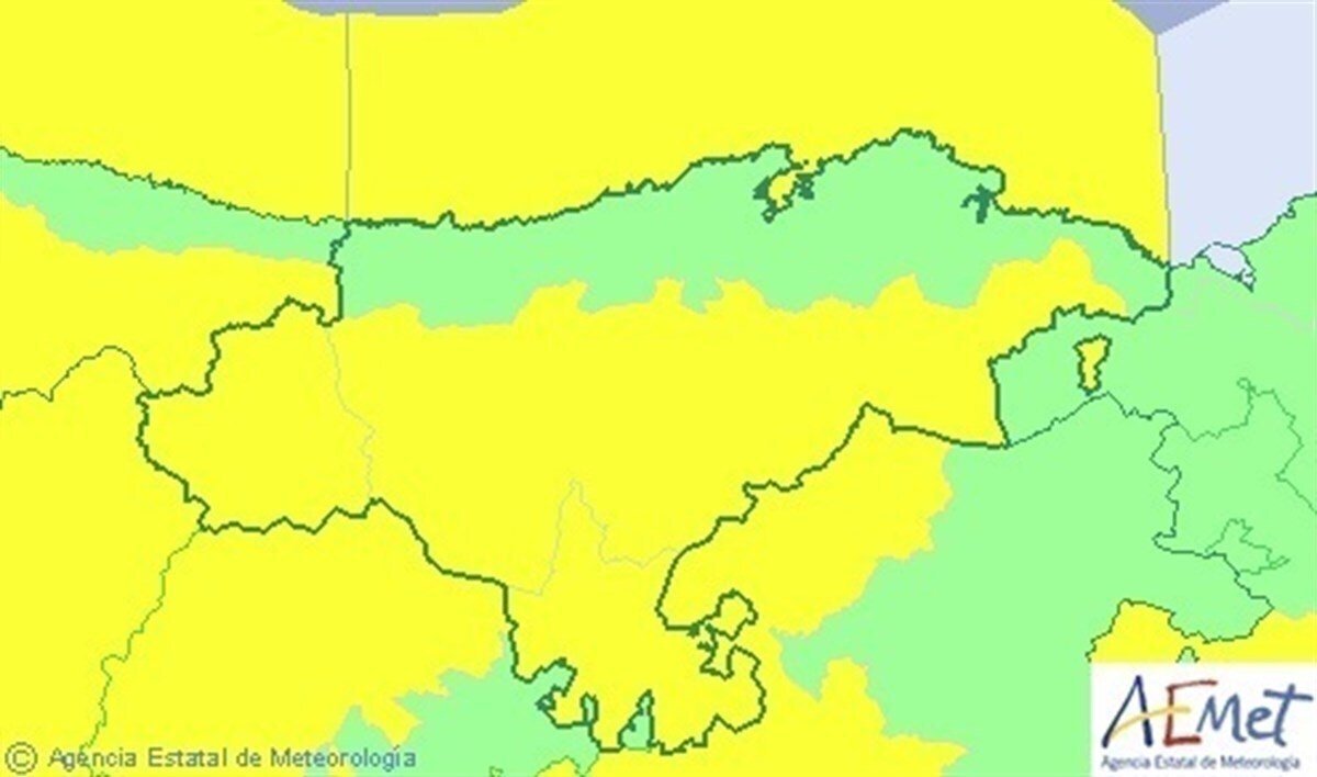 El mismo fenómeno meteorológico, y también con rachas de 90 km/h, activará el aviso amarillo en la Cantabria del Ebro desde las 6.00 hasta las 18.00 horas.