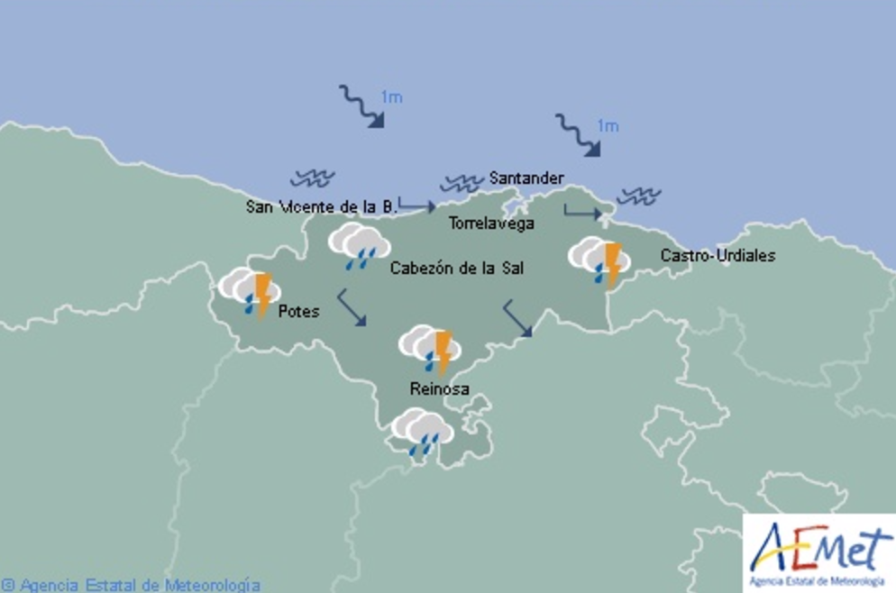 En el día de hoy, hasta las 18.00 horas, toda Cantabria estará en aviso amarillo por lluvias y tormentas. Se espera hasta esta tarde una precipitación acumulada en una hora de 15 litros por metro cuadrado.
