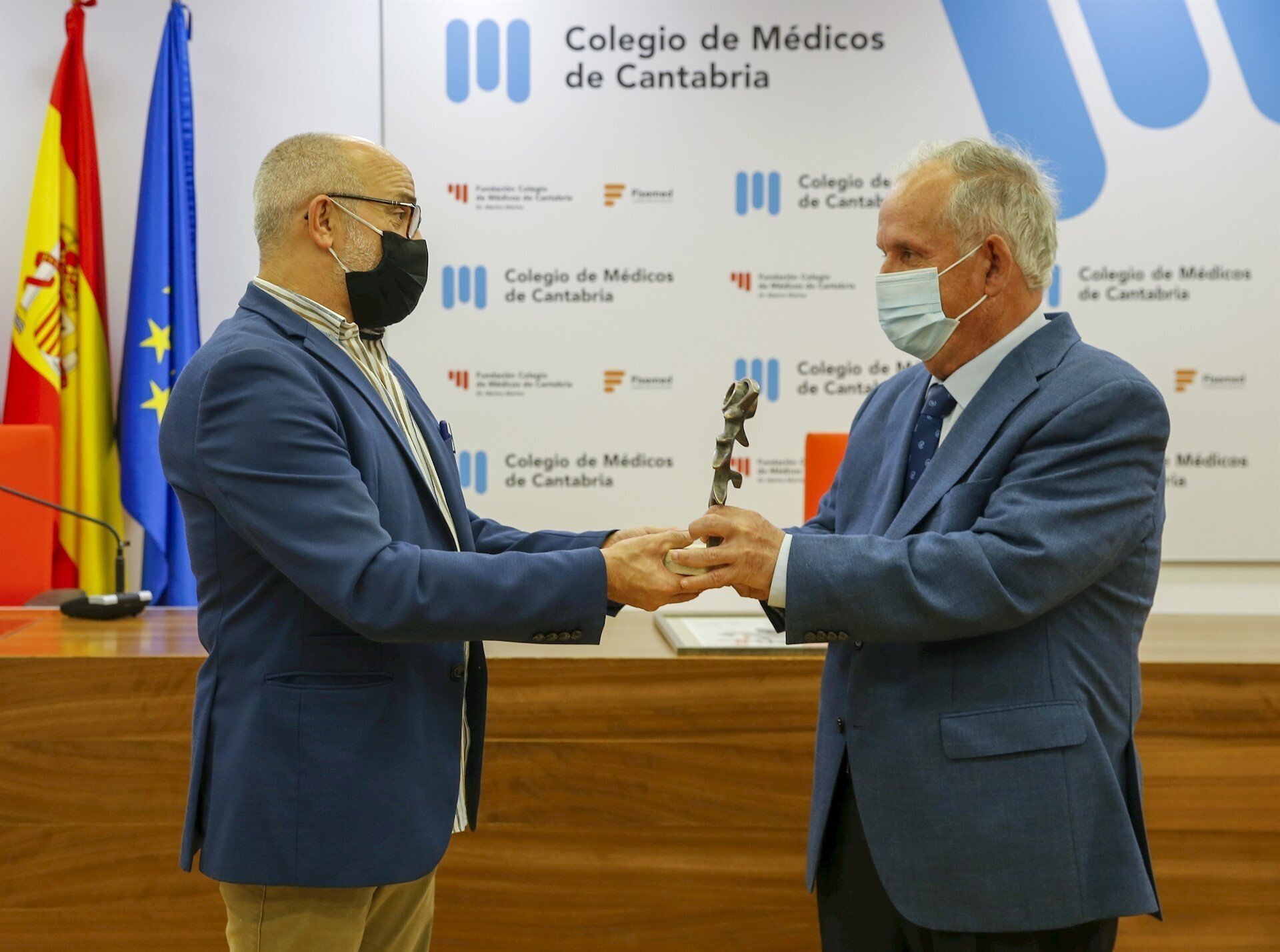 El doctor Samuel Gómez, jefe del Servicio de Urgencias del Hospital Universitario Marqués de Valdecilla hasta su jubilación este año, ha recibido este viernes el Premio al Mérito Profesional en el ámbito hospitalario concedido por el Colegio de Médicos de Cantabria.
