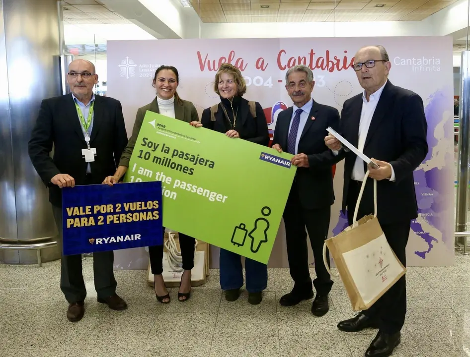 La ciudadana británica Fiona Berner se ha convertido en la pasajera 10 millones de Ryanair en el aeropuerto Seve Ballesteros de Santander.