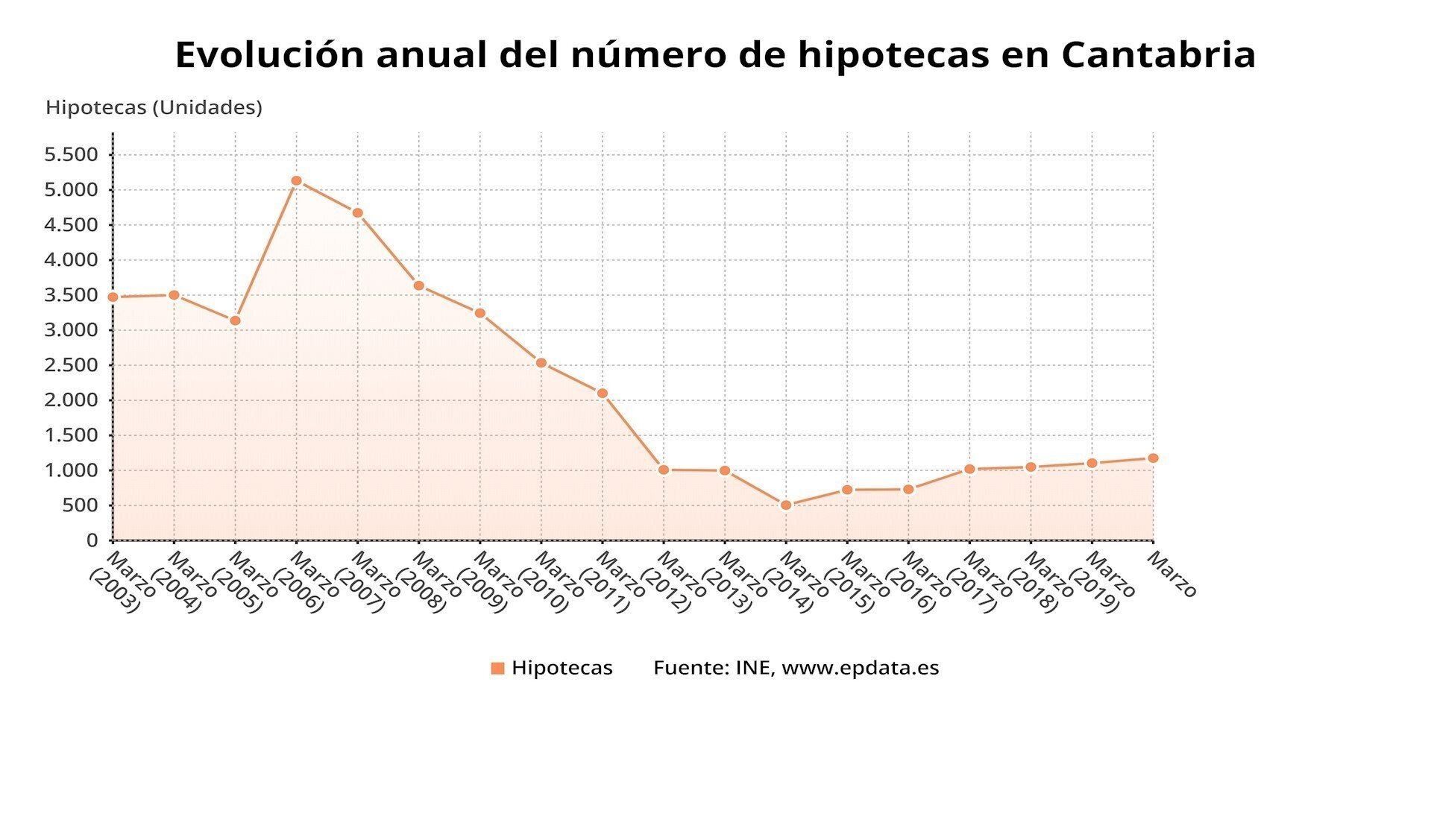Según estos datos, el incremento del 6,6 sitúa a Cantabria como la tercera de las cinco comunidades en que aumentó la firma de hipotecas en términos interanuales, tras La Rioja (26,4%) y Aragón (17,9%).