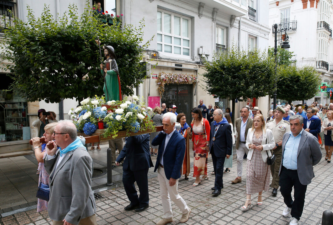 Los festejos del Centro Gallego se han iniciado con la tradicional procesión de Santiago, presidida por la Junta Directa, que ha partido de la sede social de la calle Peña Herbosa hasta la iglesia de Santa Lucía.