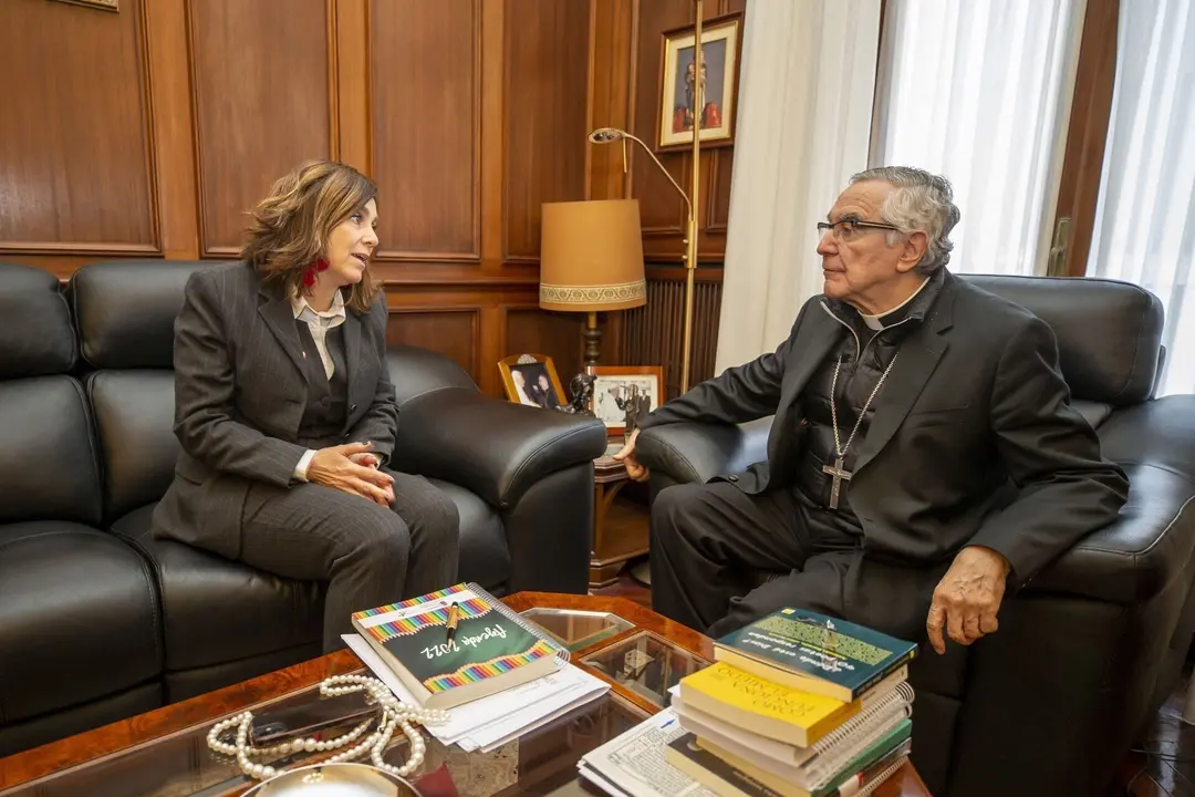 La consejera de Presidencia, Interior, Justicia y Acción Exterior, Paula Fernández (PRC), y el obispo de Santander, Manuel Sánchez Monge, han mantenido este miércoles el tradicional encuentro institucional que celebran a finales de año y en el que han repasado algunas de las materias comunes en las que trabajan de manera coordinada, al tiempo que han coincido en el consenso con el que se ha sacado adelante este año la Ley de Juego en Cantabria.