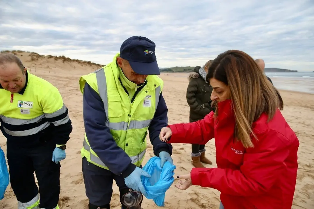 Cantabria continúa con el operativo de vigilancia y retirada de pélets, localizados, por el momento, en 15 playas de la comunidad autónoma.