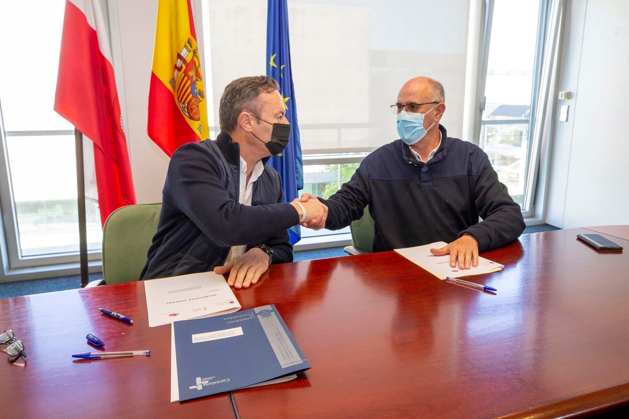 El consejero de Medio Ambiente, Guillermo Blanco, y el presidente de la Red y alcalde de Arredondo, Leoncio Carrascal, han suscrito hoy el documento que estará en vigor hasta el 31 de marzo de 2023 y que contempla, entre otras líneas de actuación, el fomento de la información, la sensibilización, la promoción del uso público y el seguimiento de procesos ecológicos que conforman el programa Naturea.