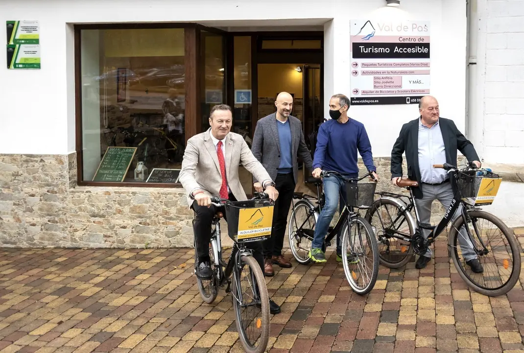 En la visita también han participado el alcalde de Puente Viesgo, Óscar Villegas, y el presidente del Grupo de Acción Local Valles Pasiegos, Ángel Sainz, quienes han destacado el esfuerzo realizado por la Consejería para llevar a cabo una actuación que contribuye al desarrollo sostenible del medio rural mediante la promoción de la movilidad eléctrica ciclable.