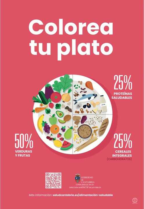 De hecho, la campaña se centra en un poster del 'Plato Saludable Cantabria', que incluye un código QR, que conduce a un sencillo vídeo explicativo.