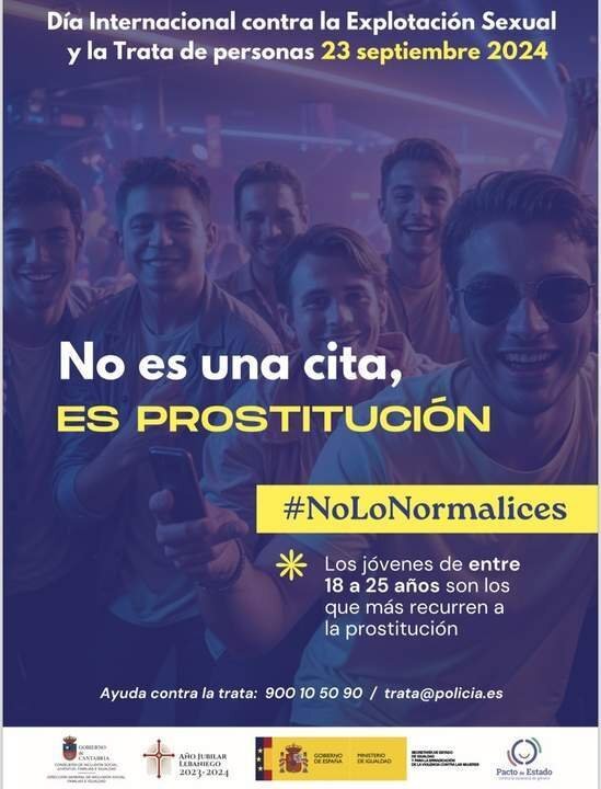 El Gobierno de Cantabria ha lanzado la campaña especialmente dirigida a jóvenes 'No es una cita, es prostitución' #NoLoNormalices, con motivo del Día Internacional contra la Explotación Sexual y la Trata de Personas que se conmemora este lunes, 23 de septiembre.
