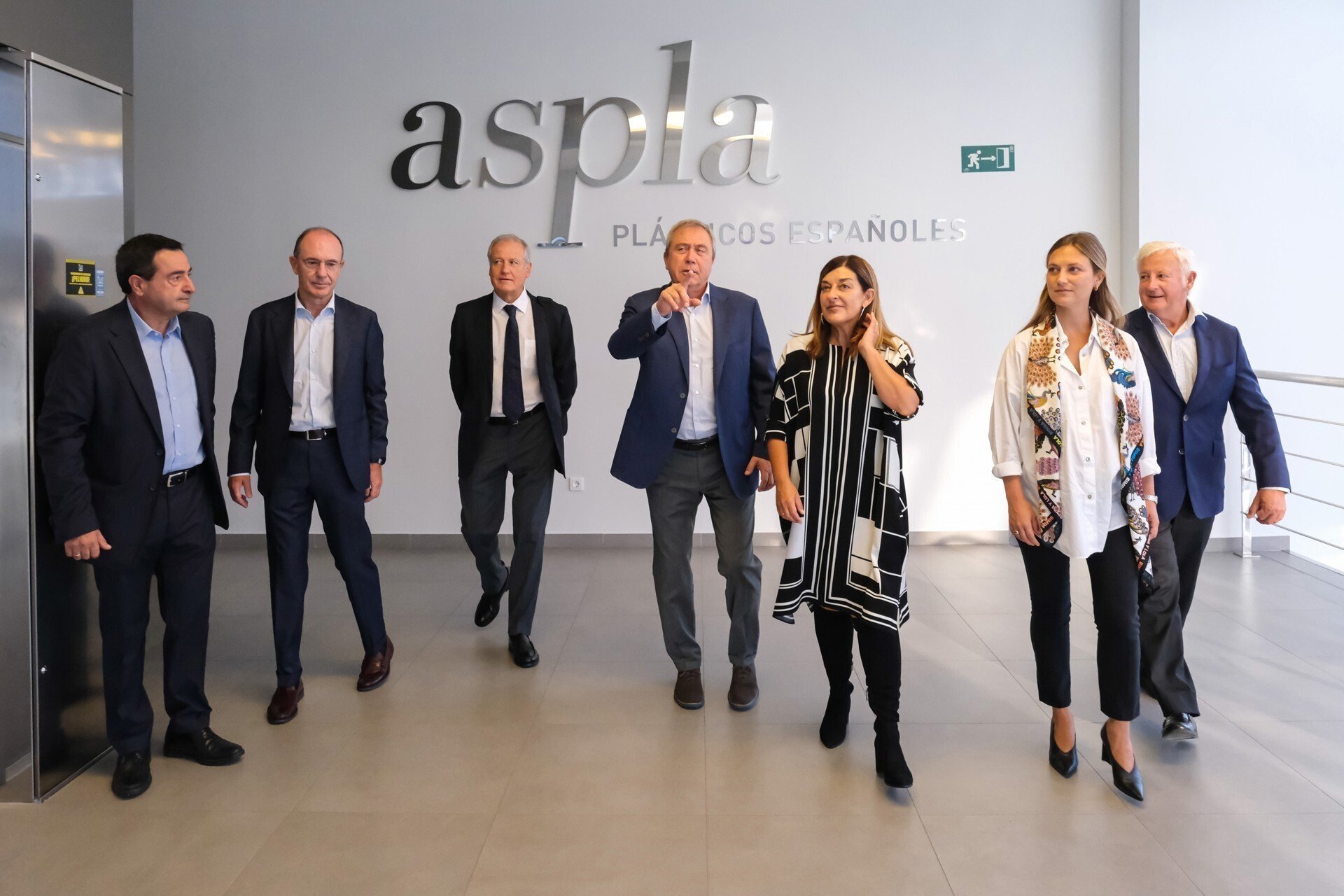Tras un recorrido por las instalaciones, las autoridades regionales se han reunido con los directivos de Aspla para conocer la situación actual y los planes de futuro de una empresa dedicada a la producción y transformación de materiales plásticos.