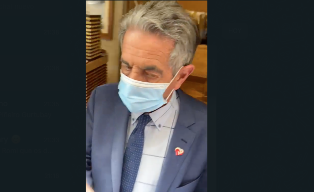 En el vídeo, grabado a la salida de un restaurante de la calle Castelar de la capital cántabra, los hosteleros increpan a Revilla y le reprochan que estuviera "comiendo en el interior" del restaurante, lo que él niega, asegurando que el lugar "está autorizado".