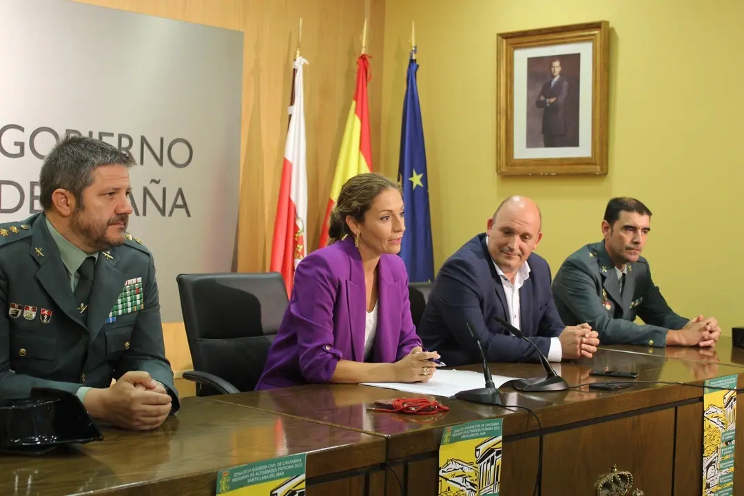 La delegada del Gobierno en Cantabria, Ainoa Quiñones; el coronel jefe de la Guardia Civil, Antonio Orantos; y el alcalde de Santillana del Mar, Ángel Rodríguez, han presentado este miércoles en rueda de prensa el programa de actividades.