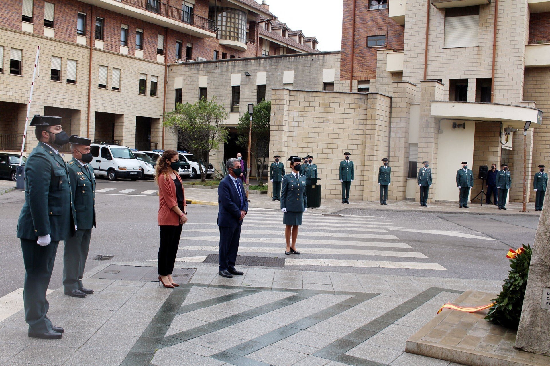 En este punto, Ángel y Quiñones, acompañados por Del Castillo, depositaron una corona de laurel en el monolito erigido en el acuartelamiento. El acto concluyó con el himno de la Benemérita.